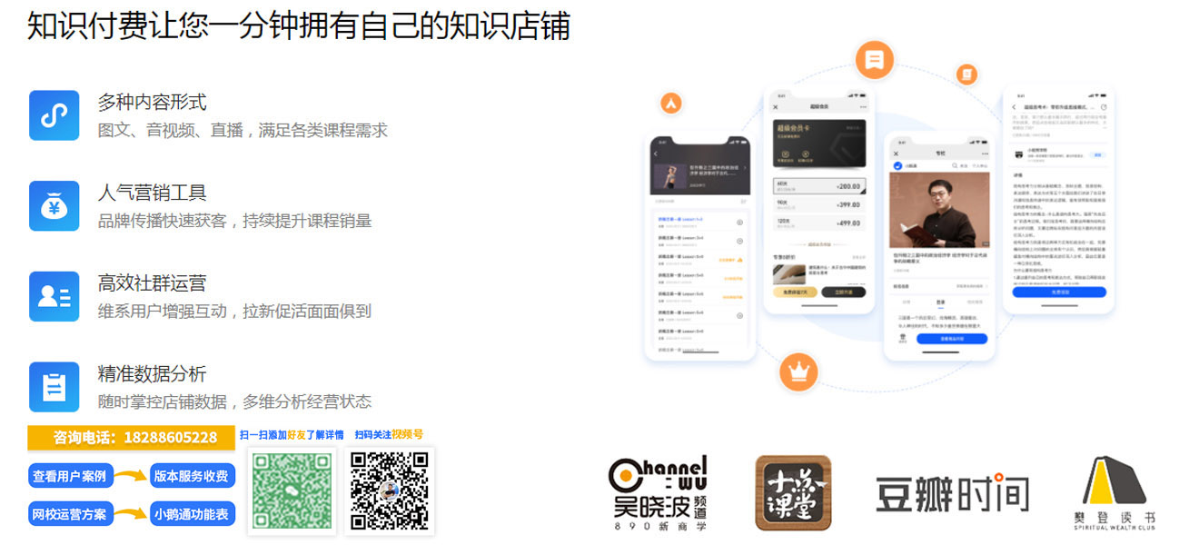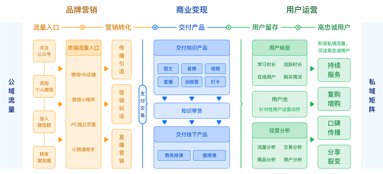 帮助商家搭建集品牌传播、商业变现和用户运营于一体的线上知识服务系统